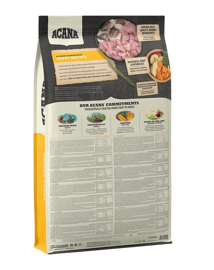 Gemaakt in een familiebedrijf, bekroonde productiefaciliteit in Canada van verse en regionale ingrediënten, houdt het graanvrije Acana droogvoer uw hond gelukkig, gezond en sterk.