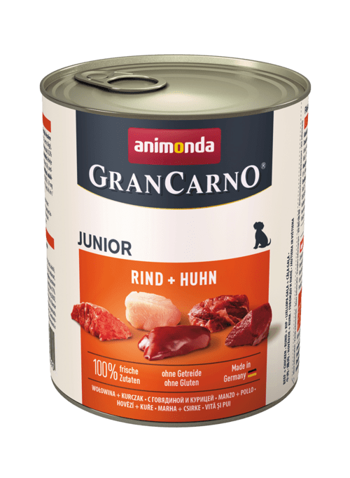 GranCarno Junior staat voor evenwichtige, lekkere gezonde voeding op het hoogste niveau voor groeiende honden in het eerste levensjaar. De geselecteerde, verse vleesgrondstoffen garanderen de ongeëvenaarde smaak die honden zo waarderen. GranCarno Junior - met de puppygerechte, kleine vleesstukjes is speciaal afgestemd op de voedingsbehoeften van groeiende, jonge honden.