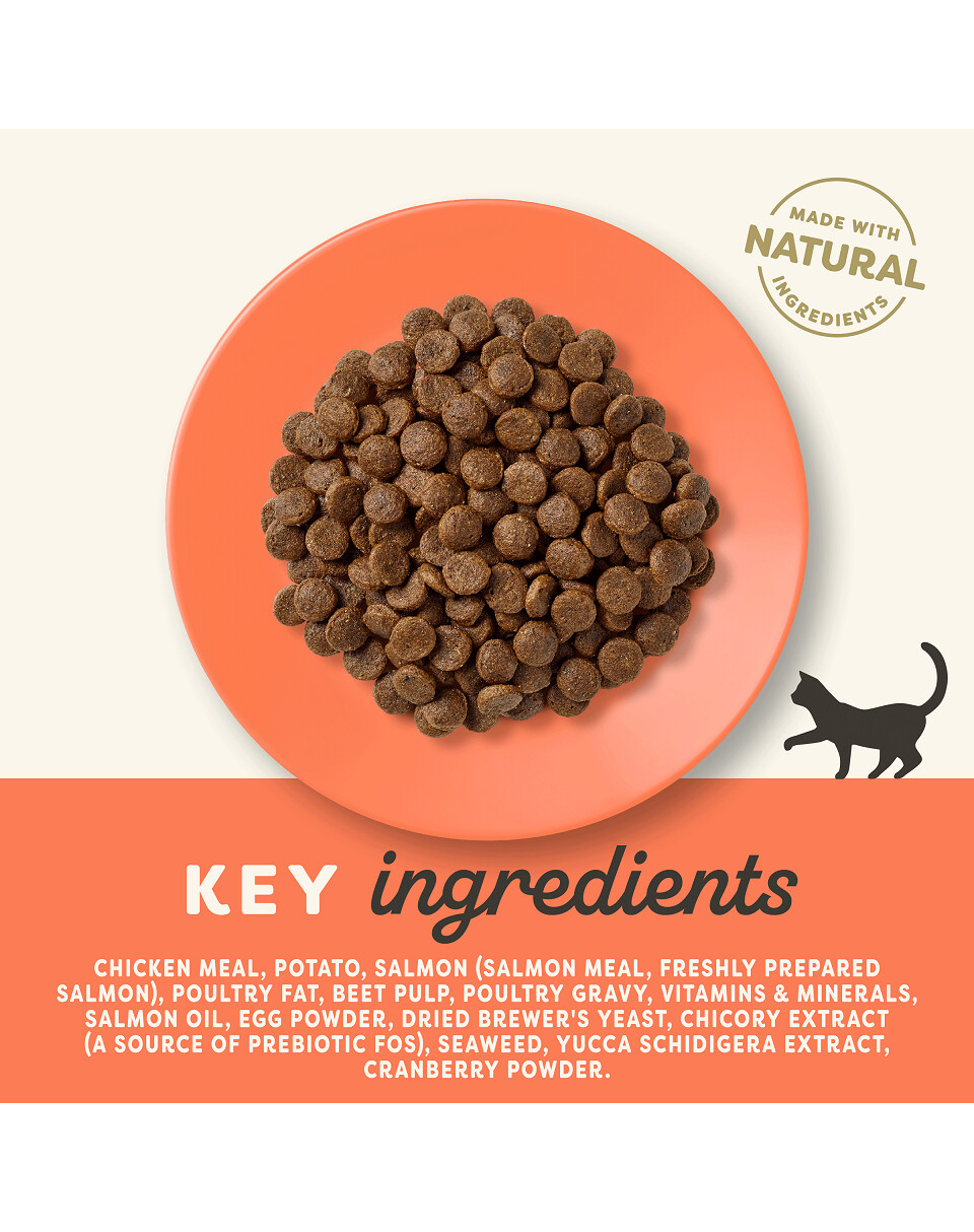 Bevat 84 % dierlijke ingrediënten. De formule is gebaseerd op kip en zalm. Katten kunnen als vleeseters geen overmatige hoeveelheden toevoegingen in hun voeding verdragen. Het gebrek aan granen belast het spijsverteringssysteem van de kat niet te veel en het voer wordt beter door het lichaam van de kat opgenomen.