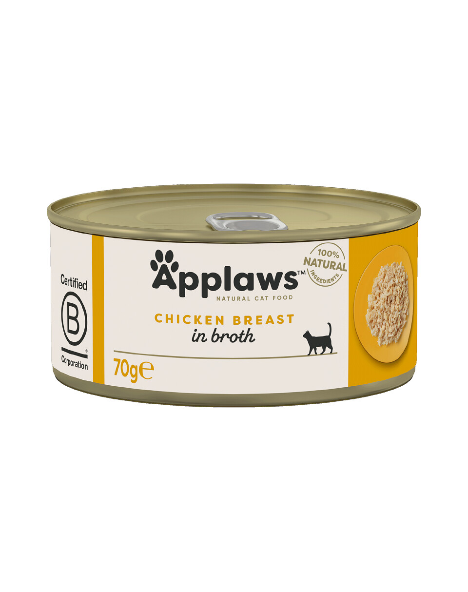 Applaws kattenvoer in blikken biedt de hoogste kwaliteit op de markt. De blikken bevatten uitsluitend stukjes kipfilet of tonijnfilet met wat rijst en heerlijke toevoegingen zoals pompoen, kaas en garnalen.