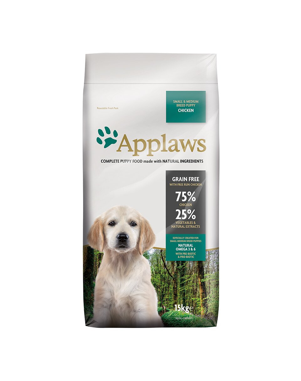Applaws Puppy Small & Medium Kip hondenvoer is een compleet voer met kip, speciaal voor puppy's van kleine en middelgrote rassen. Het smakelijke voer bevat 75% kip en bestaat uit groenten.