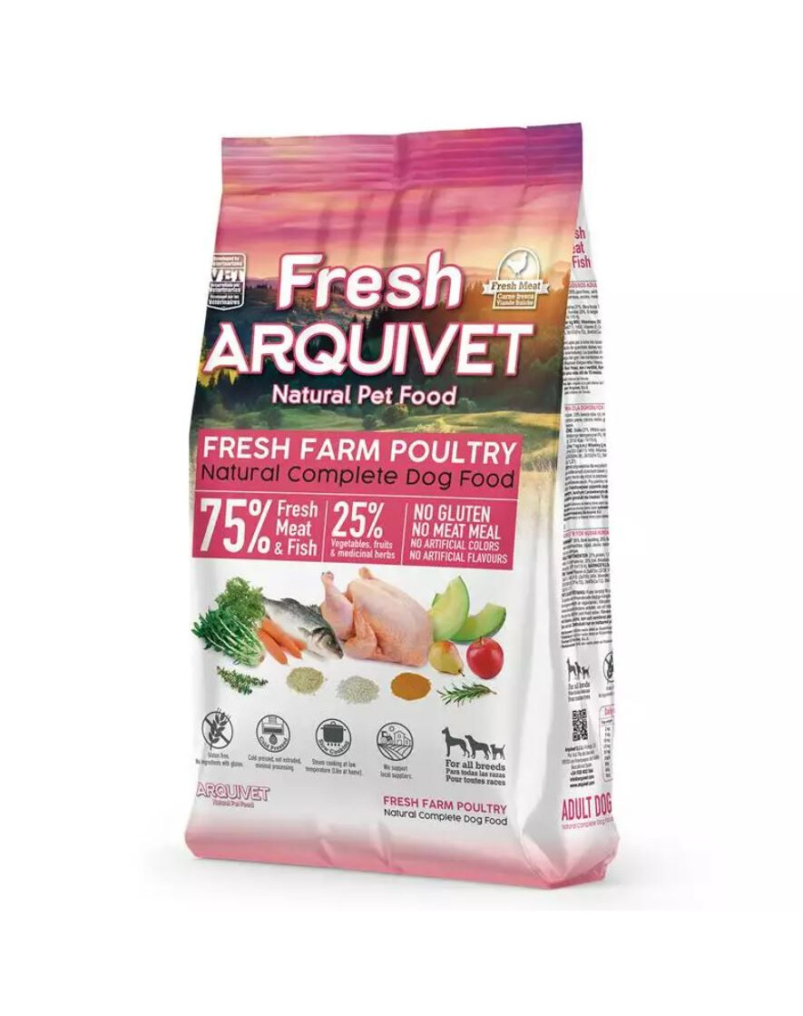 INGREDIËNTEN: 55% vers kippenvlees, 20% verse vis, rijst, bietensnippers, wortelen, biergist, cichorei, meloen, peer, appel, kurkuma, rozemarijn, tijm.