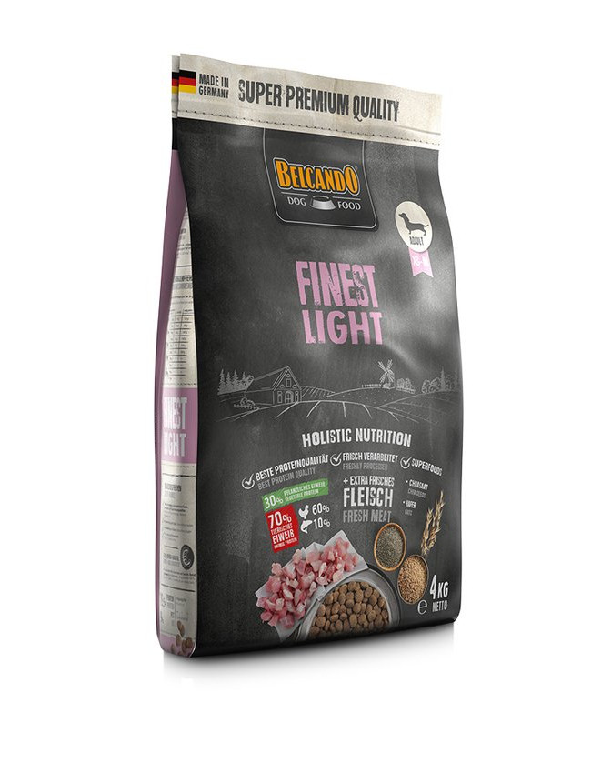 Het beperkte gehalte aan eiwit en vet maakt BELCANDO® Finest Light tot een bijzonder geschikte voeding voor honden met een lage activiteit en oudere honden. Een bijzonder hoog gehalte aan ruwe vezels vergemakkelijkt het behouden of verminderen van het lichaamsgewicht met een passende verzadiging.