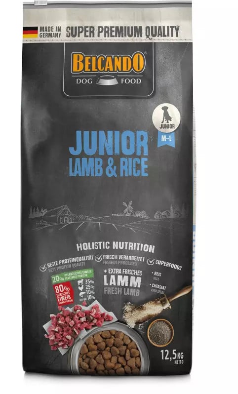 Geselecteerde grondstoffen met een uitgebalanceerde verhouding van energie en mineralen zorgen voor een evenwichtige groei. Veel mals lam en goed verteerbare rijst maken BELCANDO® Junior Lamb & Rice ook voor gevoelige jonge honden goed verdraagbaar.
