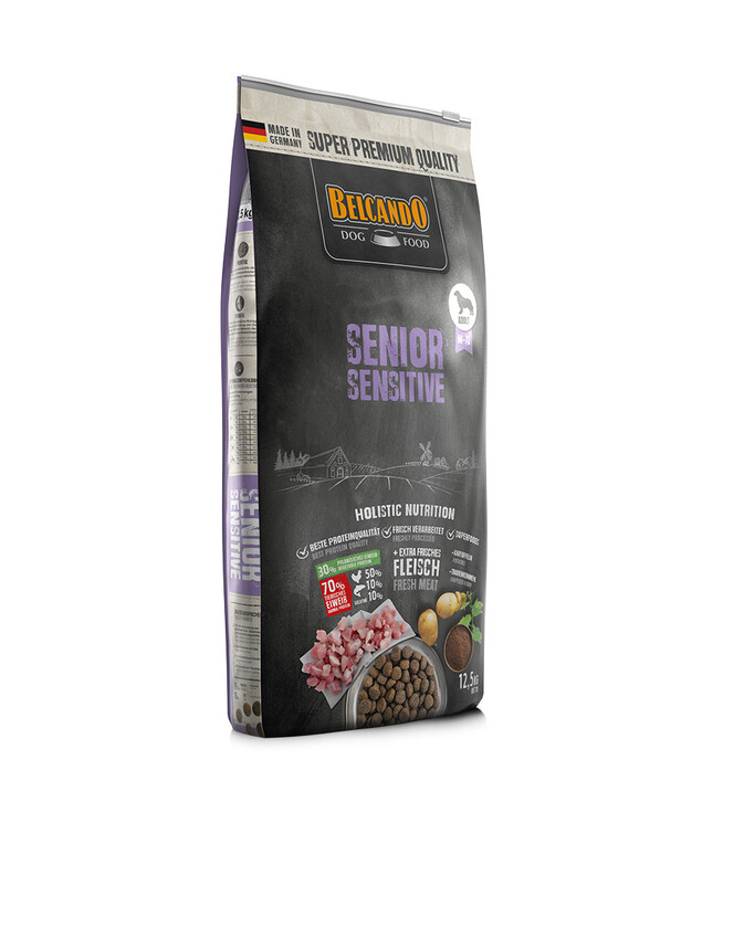 Beste grondstoffen zorgvuldig bereid en in het kader van een holistische voeding gecombineerd. BELCANDO® Senior Sensitive is het geschikte voer voor oudere of gevoelige honden. Rijk aan gevogelte en met goed verdraagbare aardappelen. Daarnaast aangevuld met waardevol koudgeperst druivenpitmeel zorgt het voor een gezonde stofwisseling en de belangrijke celbescherming.