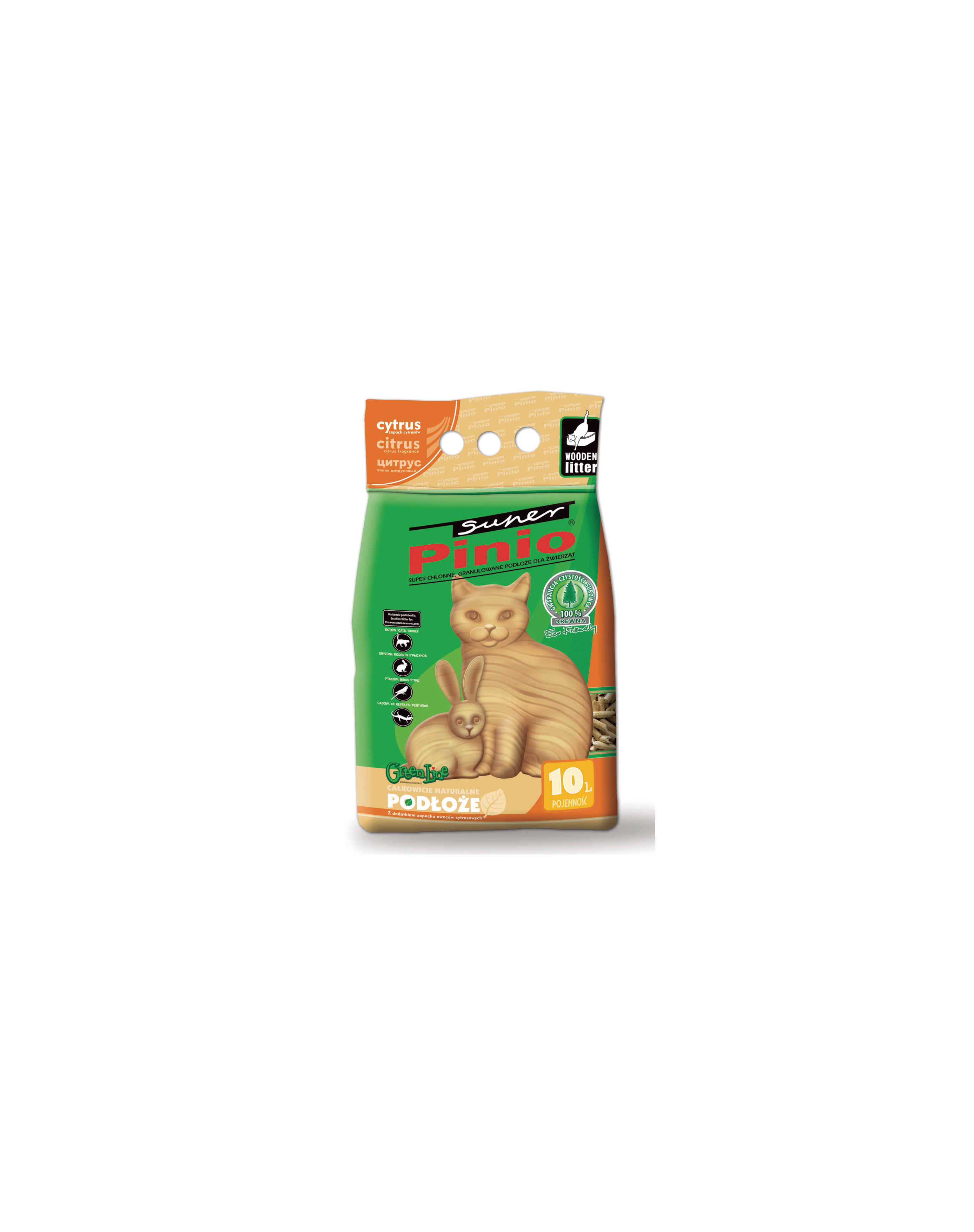 Benek Super Pinio is een universele pellet als bodembedekking voor huisdieren zoals katten, hamsters, cavia's, konijnen, chinchilla's en vogels. Het heeft de vorm van rollen met een diameter van 6 mm en lengtes van 6 tot 12 mm.