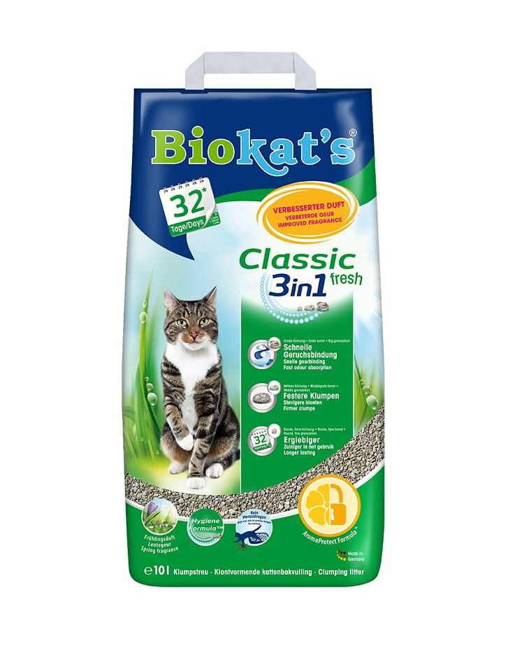 Laat je betoveren door de bijzondere combinatie van vers gesneden gras en ochtenddauw. Verse kruiden, witte bloemen en een vleugje muskus herinneren aan een droomachtige lente. Biokat’s Classic fresh met lentengeur kenmerkt zich door de AromaProtect Formula™. Deze kapselt betrouwbaar onaangename geuren in en geeft een aangename lentengeur vrij. De door experts voor kattenhygiëne ontwikkelde Biokat’s AromaProtect Formula™ zorgt daardoor voor een langdurige geurbinding!
