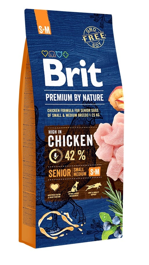 De belangrijkste eigenschappen van het voer Brit Premium By Nature Senior Small/Medium:
