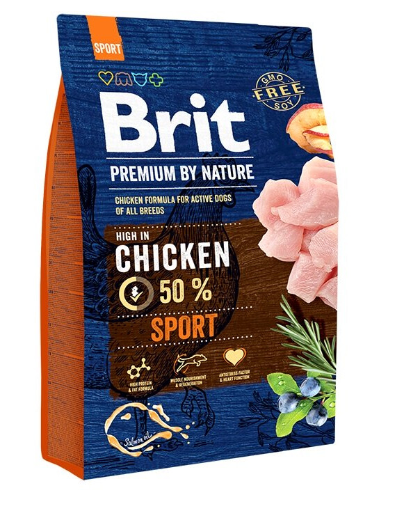 Compleet voer met kip voor actieve honden van alle rassen die een hoge energiebehoefte hebben.