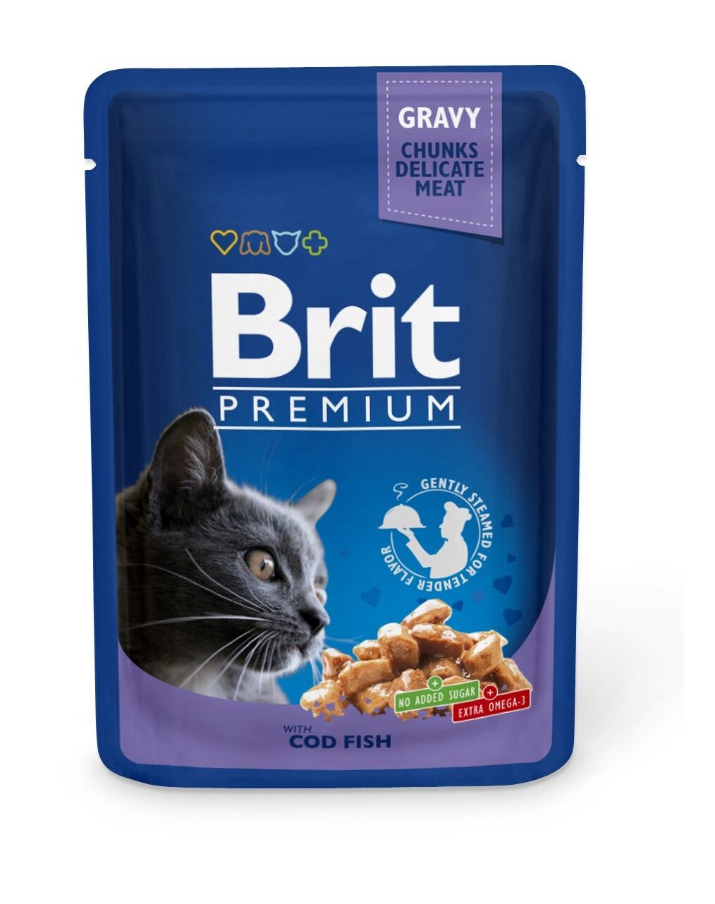 Premium Alleinfuttermittel voor volwassen katten met Kabeljauw in Saus. De smaakvarianten houden rekening met de natuurlijke voorkeuren van katten en hun voedingsbehoeften met betrekking tot leeftijd of een speciaal dieet. Het heerlijke sap benadrukt de smaak van de vleesstukjes en voorziet de kat van de nodige vloeistoffen.