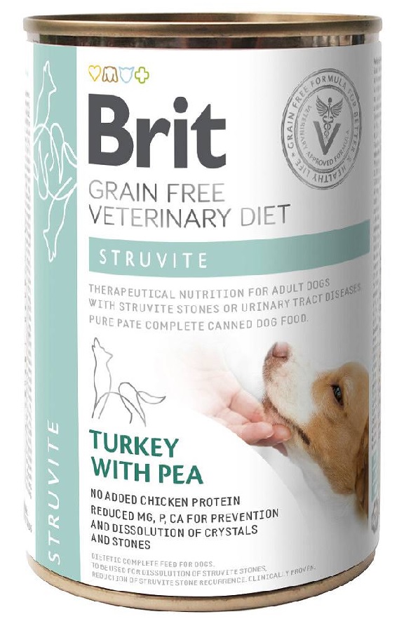 Diergeneeskundige volledige voeding met kalkoen en erwten voor volwassen honden met urinewegproblemen. Het voorkomt ook de vorming van struvietstenen.