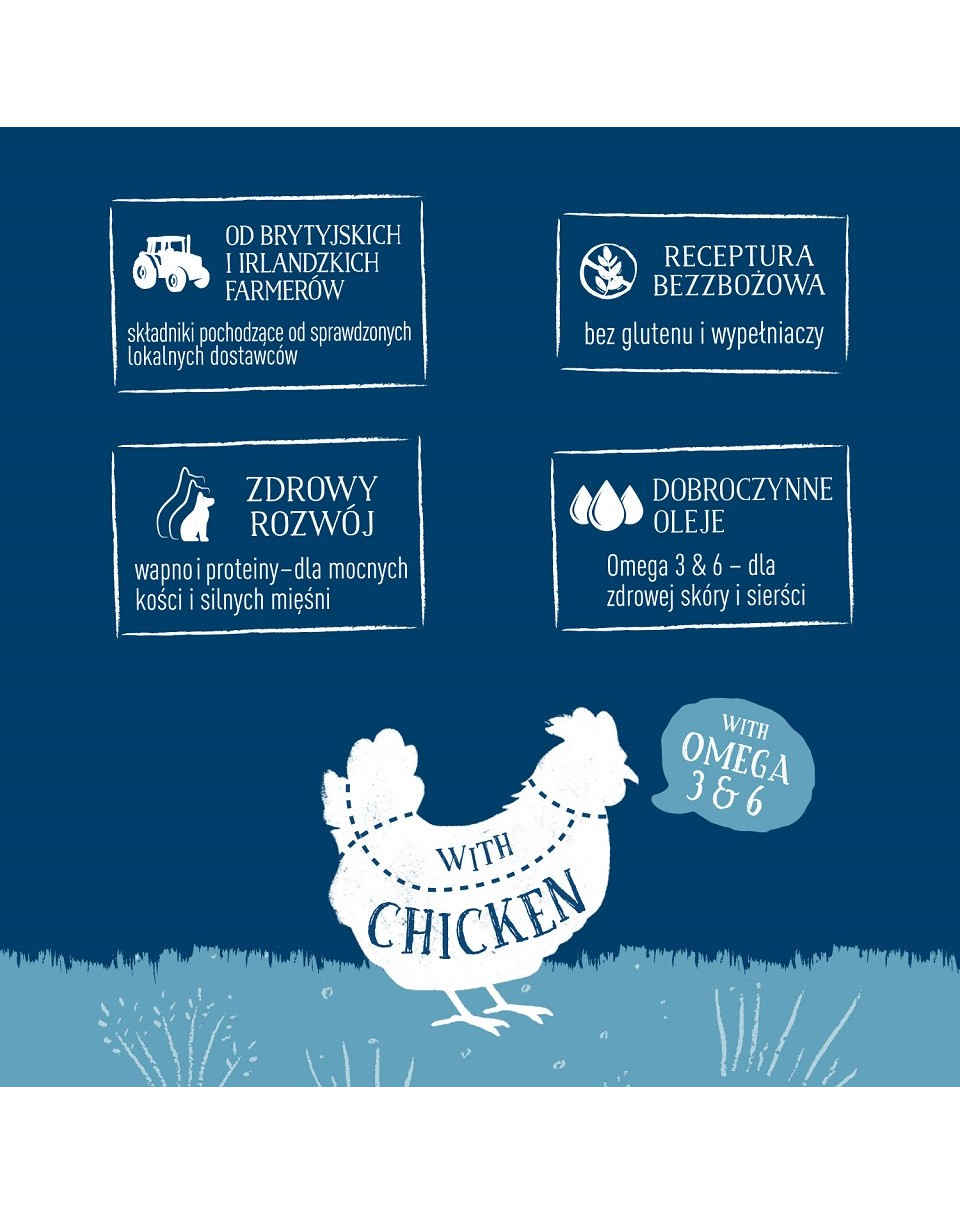 Een compleet puppyvoer in de vorm van brokken met kip in een smakelijke gelei. Zorgvuldig samengesteld om uw jonge hond van alle voedingsstoffen te voorzien die hij nodig heeft voor een gezonde ontwikkeling. De nuttige Omega-3- en Omega-6-zalmoliën in het product ondersteunen het immuunsysteem en de cognitieve functies.