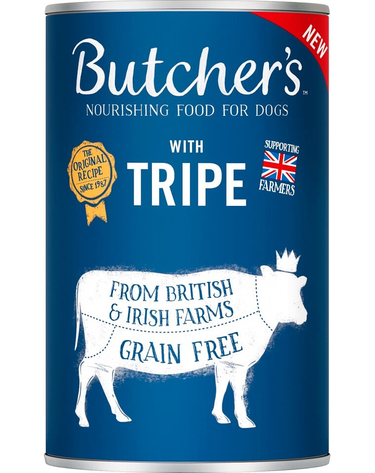 Butcher's Original Tripe is een met runderpens verrijkt compleet voer, afgestemd op de dagelijkse behoefte van huisdieren. Alle producten worden gemaakt van natuurlijke ingrediënten en zijn verpakt in milieuvriendelijke verpakkingen.