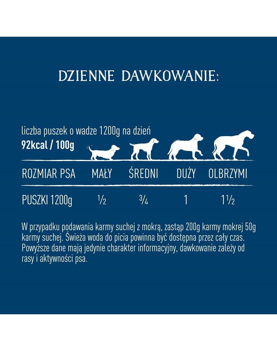 Als u droogvoer met natvoer voert, vervang dan 200 g natvoer door 50 g droogvoer. Vers drinkwater moet te allen tijde beschikbaar zijn. De naastgelegen cijfers zijn alleen ter informatie, de dosering hangt af van het ras en de activiteit.