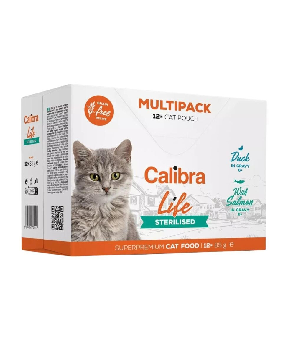 Calibra Cat Life Pouches Gesteriliseerd Multipack is een mix van graanvrije vleeszakjes voor gesteriliseerde katten, 2 varianten.