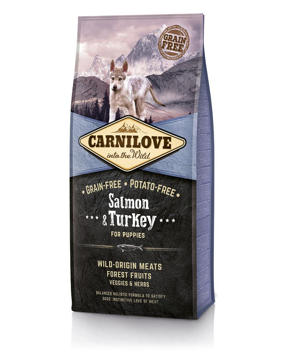 Hoogwaardige voeding met een hoog gehalte aan essentiële aminozuren, vitamines en mineralen is van cruciaal belang voor de gezonde groei van puppy's. Carnilove Puppy is samengesteld om zo dicht mogelijk bij de oorspronkelijke natuurlijke voeding van honden en hun genetische voorouder, de wolf, te komen. Hun voeding bestond voornamelijk uit spierweefsel, organen en botten van de prooi, aangevuld met de juiste hoeveelheid wilde bessen, groenten en kruiden. Al deze componenten zijn essentieel voor de gezonde ontwikkeling van botten, gewrichten en spieren. Zalmvlees en -olie leveren de omega-vetzuren die nodig zijn voor een gezonde huid en vacht en de optimale ontwikkeling van het zenuwstelsel.