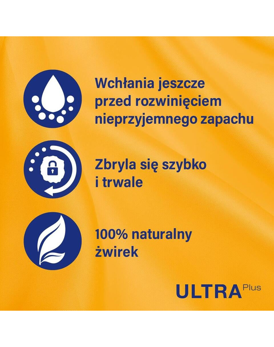 CATSAN™ Ultra plus staat bekend om zijn bijzonder hoge rendement. De fijne kleikorrels nemen een veelvoud van hun eigen gewicht aan vloeistof op en vormen onmiddellijk stevige kleine klonten die gemakkelijk te verwijderen zijn zonder te breken. Hierdoor blijft er alleen frisse, ongebruikte vulling in de bak achter. Dit maakt CATSAN™ Ultra plus niet alleen bijzonder efficiënt, maar ook hygiënischer dan veel andere kattenbakvullingen.