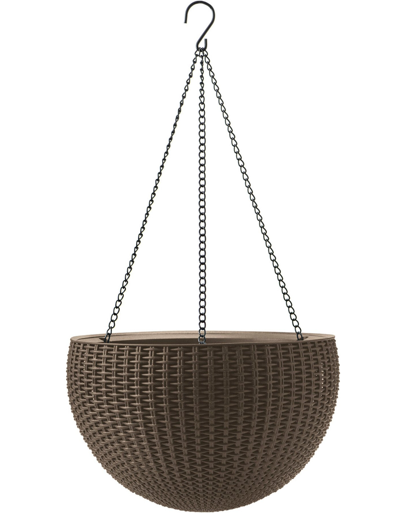 Aan de pot is een sterke en stabiele handgreep met drie kettingen bevestigd, waaraan hij veilig kan worden opgehangen. Aan de onderkant van de pot bevindt zich een afwateringsgat.