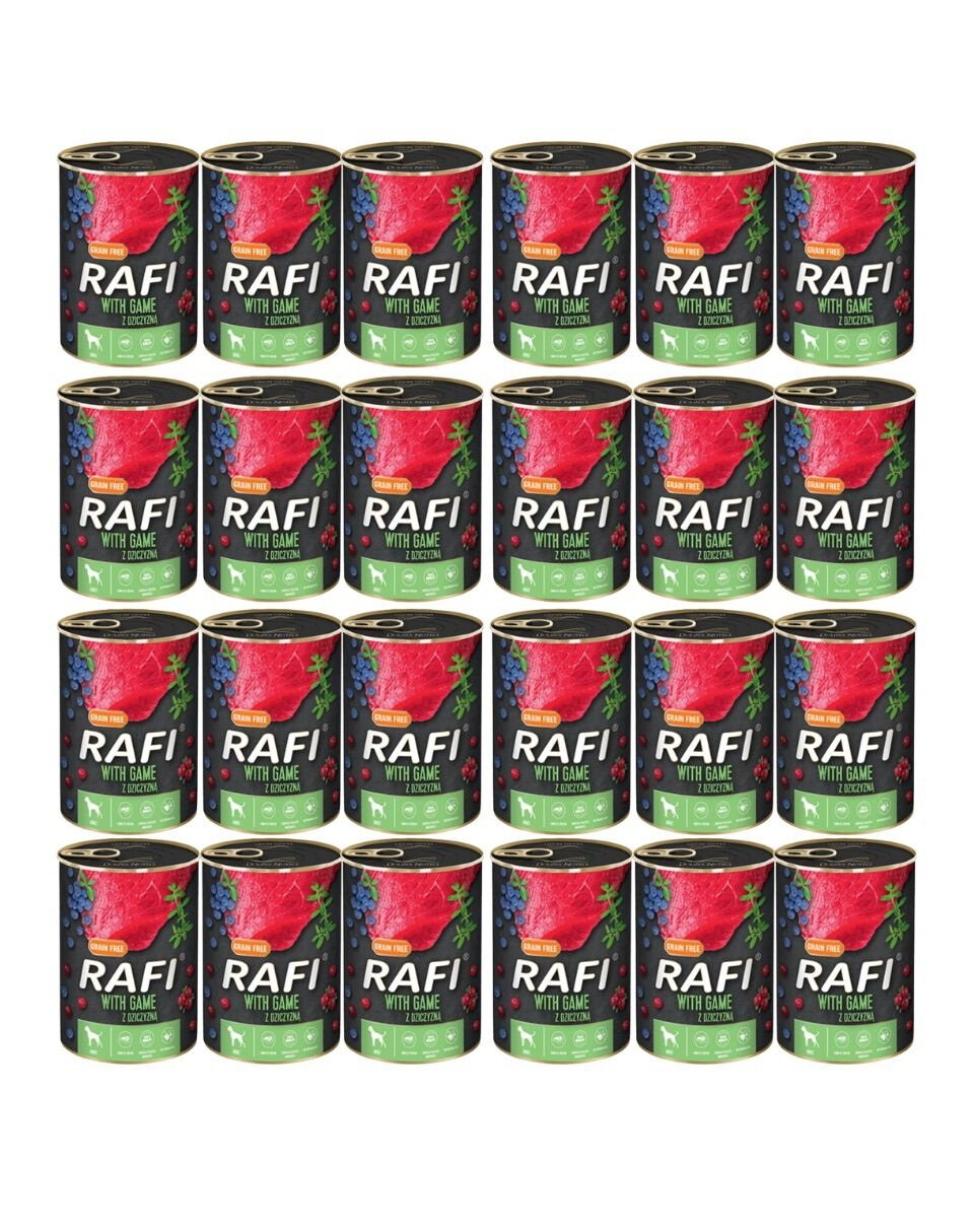 Samenstelling: Vlees en dierlijke derivaten 65% (wildvlees 4%), fruit (blauwe bessen 2%, veenbessen 2%), mineralen, oliën en vetten (lijnzaadolie 0,2%), gedroogde tijm 0,01%.