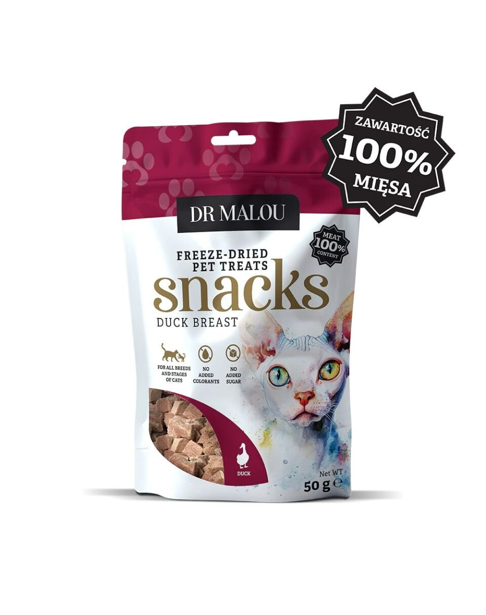 Unieke, gezonde en natuurlijke lekkernijen voor jouw kat! Gevriesdroogde blokjes van Dr Malou zijn aanvullend voer waarvan de samenstelling voor zich spreekt – 100% eendenborstvlees. Geen onnodige toevoegingen, conserveermiddelen, kleurstoffen, granen of suiker. Alleen pure kwaliteit en volop voedingswaarde!