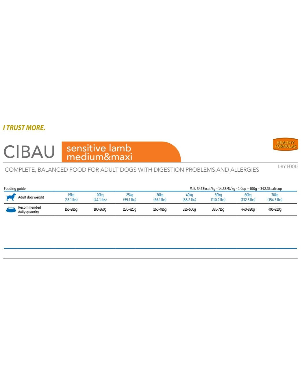 Cibau Lamsvlees & Rijst Compleet, uitgebalanceerd en gezond super-premiumvoer voor volwassen honden met spijsverteringsproblemen en voor honden die lijden aan allergieën. Geschikt voor honden met een gevoelige spijsverteringskanaal.