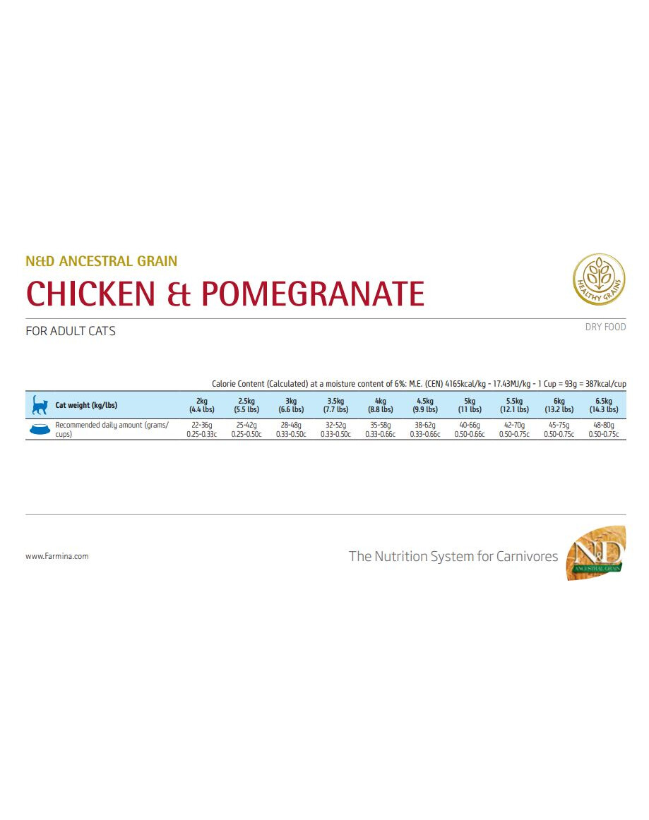 Kip zonder bot (24%), gedehydrateerd kippeneiwit (24%), spelt (10%), haver (havervlokken) (10%), kippenvet, gedroogde eieren, haring, gedehydrateerd haringeiwit, visolie (uit haring), gedroogde bietensnippers, gedroogde wortelen, luzernegroenmeel, chicoreinuline, fructooligosacchariden, gistextract (bron van mannanoligosacchariden), gedroogde granaatappelvruchten (0.5%), gedroogde appels, gedroogde spinazie, psylliumschalen en -zaden (0,3%), gedroogde sinaasappels, gedroogde bosbessen, natriumchloride, gedroogde biergist, kurkuma (0,2%), aloë vera-extract.