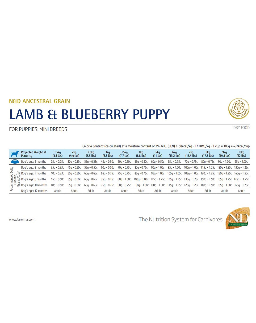 Vers lamsvlees (20%), gedroogd lamsvlees (20%), spelt (10%), haver (10%), kipvet, vers haringvlees, gedroogd haringvlees, gedroogde volle eieren, gedroogde bietenpulp, visolie (van haring), erwtenvezels, gedroogde wortelen, gedroogde luzerne, kipkraakbeen (bron van glucosamine en chondroïtinesulfaat), inuline, fructooligosacchariden, gistextract (bron van mannan-oligosacchariden), gedroogde bosbessen (0.5%), gedroogde spinazie, psyllium (0,3%), gedroogde appel, gedroogde sinaasappel, gedroogde granaatappelvrucht, natriumchloride, gedroogde biergist, kurkuma wortel (0,2%).