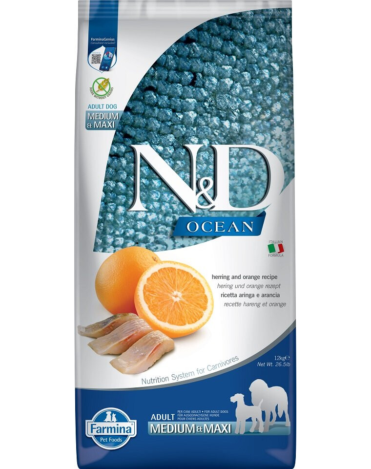 Haring (26 %), gedehydrateerd haringeiwit (25 %), zoete aardappel, visolie (uit haring), gedroogde eieren, erwtenvezels, gedroogde wortelen,