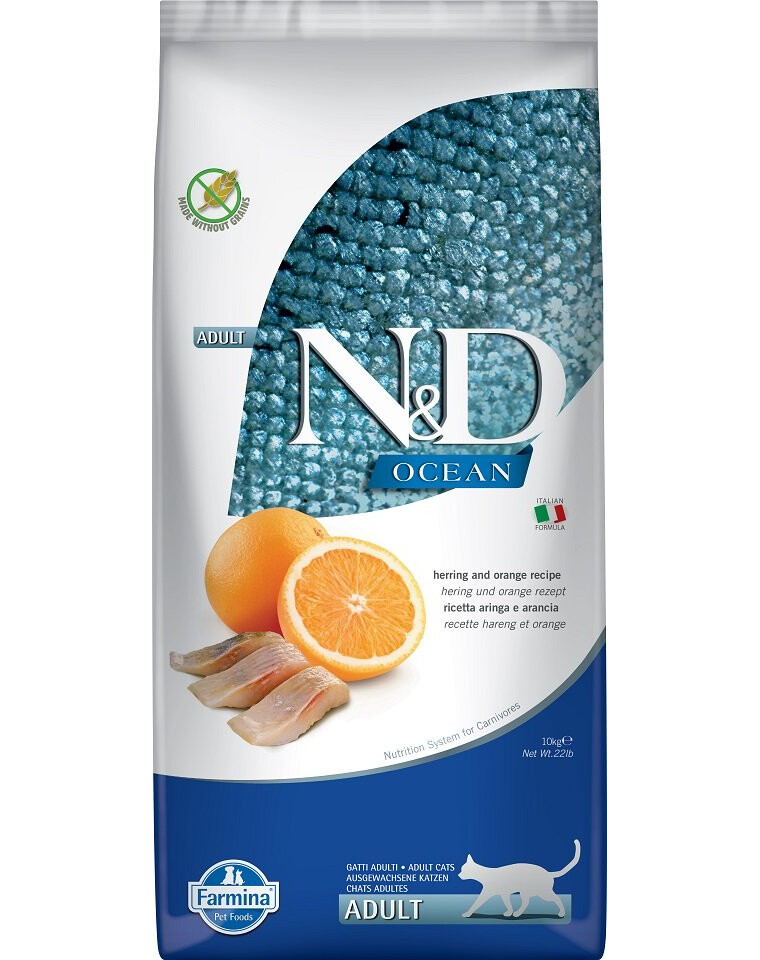 Het voer bevat dierlijke eiwitten uitsluitend uit vis. Vers en gedroogd haringvlees maakt tot 62 % van de totale formule uit, wat zorgt voor een gezonde groei, een gezonde ontwikkeling en een goede conditie van de kat. De toevoegingen in het voer zijn sinaasappels en zoete aardappelen, die granen volledig hebben vervangen. Ze leveren een grote hoeveelheid vitamines, voornamelijk C, vezels en mineralen. Het voor katten moeilijk verteerbare en slecht verdraagbare graan is vervangen door pompoen, dat een lage glycemische index heeft.