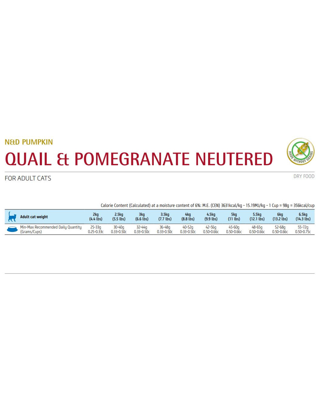FARMINA N&D Pumpkin WACHTEL & GRANATAPFEL VOOR GECASTREERDE KATTEN