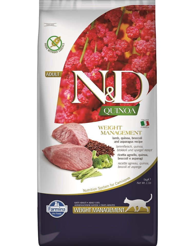 Farmina N&D Quinoa Weight Management is een dieet Alleinfuttermittel voor katten, dat wordt aanbevolen voor de vermindering van overmatig lichaamsgewicht.