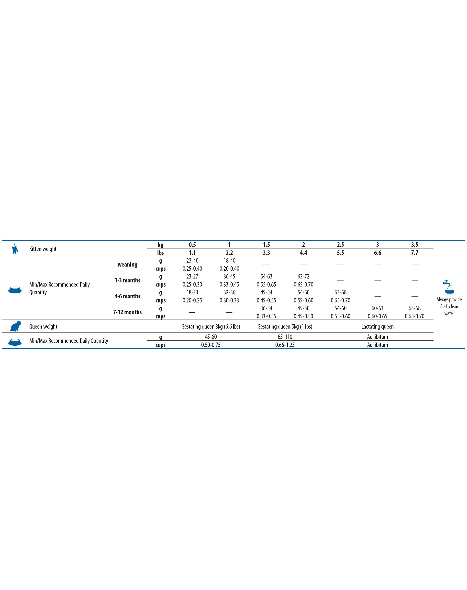 Vitaminen, provitaminen en andere chemisch gedefinieerde stoffen met een vergelijkbare werking: Vitamine A (3a672b) 19500jm; Vitamine D3 (3a671) 1300jm; Vitamine E (3a700) 650mg; Vitamine C (3a300) 325mg; Niacine (3a314) 165mg; Calcium D-Pantothenaat (3a841) 54mg; Vitamine B2 21.5mg; Vitamine B6 (3a831) 9,3mg; Vitamine B1 (3a820) 10,4mg; Biotine (3a880) 1,55mg; Foliumzuur (3a316) 1,63mg; Vitamine B12 0,1mg; Cholinechloride (3a890) 2700mg; Beta-Caroteen [3a160(a)] 2mg. Spoorelementmengsels: Zink (Zinkchelaat met methioninehydroxyanalogon) (3b6.10) 176mg; Mangaan (Mangaanchelaat met methioninehydroxyanalogon) (3b5.10) 68.8mg; IJzer [Glycinechelaat van ijzer(II)-hydraat] (3b108) 62.6mg; Koper (Koperchelaat met methioninehydroxyanalogon) (3b4.10) 17mg. Aminozuren, hun zouten en verwante producten: DL-Methionine, puur (3c301) 5500mg; Taurine (3a370) 4500mg; L-Carnitine (3a910) 350mg. Sensorische additieven: Groene thee-extract 100mg; Rozemarijn-extract. Antioxidanten: Tocopherol-extracten uit plantaardige oliën.