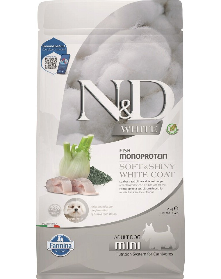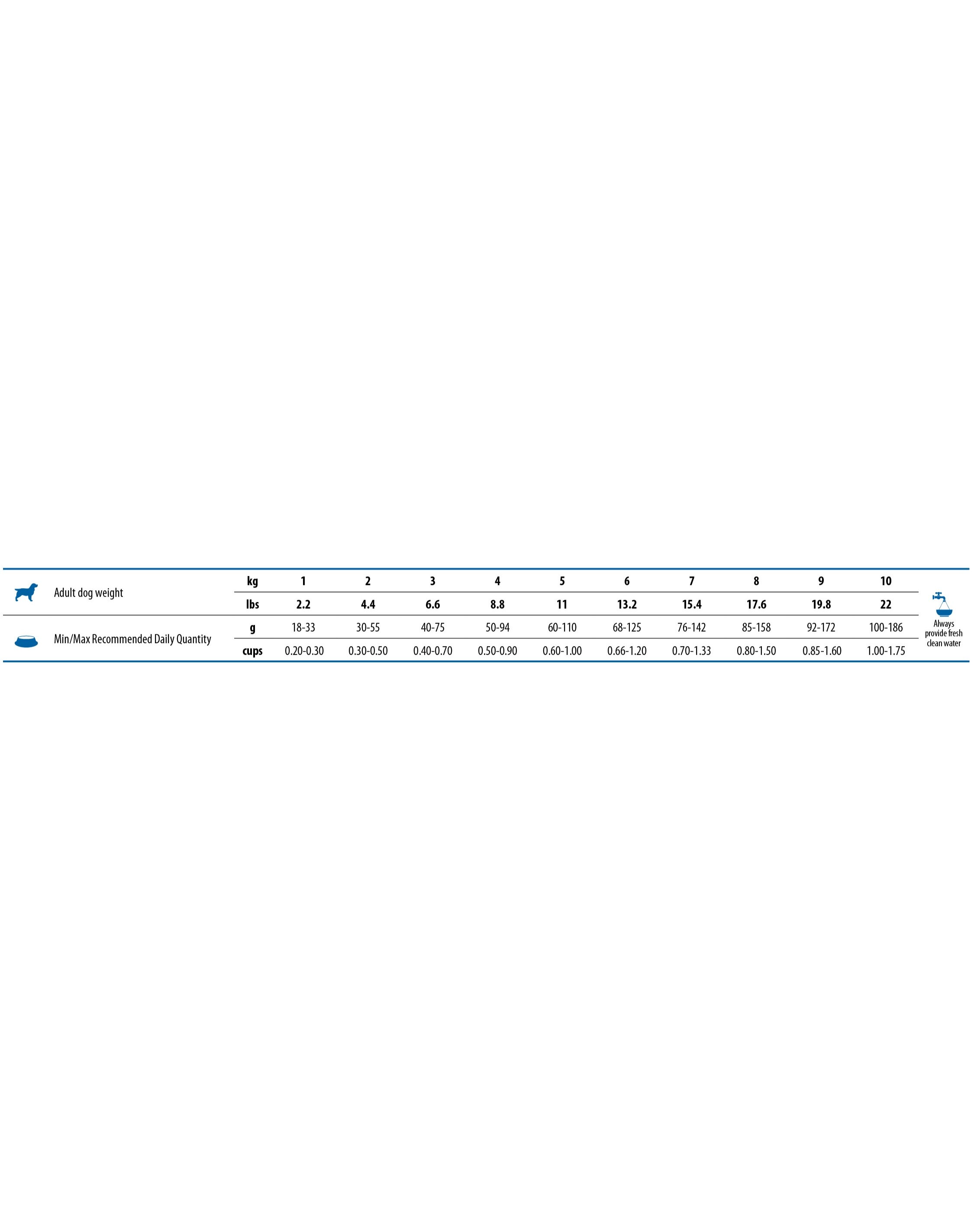 Alleinfuttermittel voor volwassen honden van kleine rassen met zeebaars, spirulina en venkel.