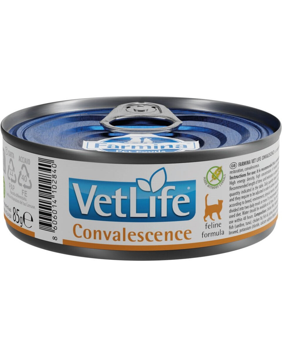 Farmina Vet Life Convalescence is een compleet dieetvoer voor de voedingsregeneratie bij volwassen katten. Het wordt ook aanbevolen ter ondersteuning bij de behandeling van dieren die lijden aan ziekten van verschillende etiologieën.