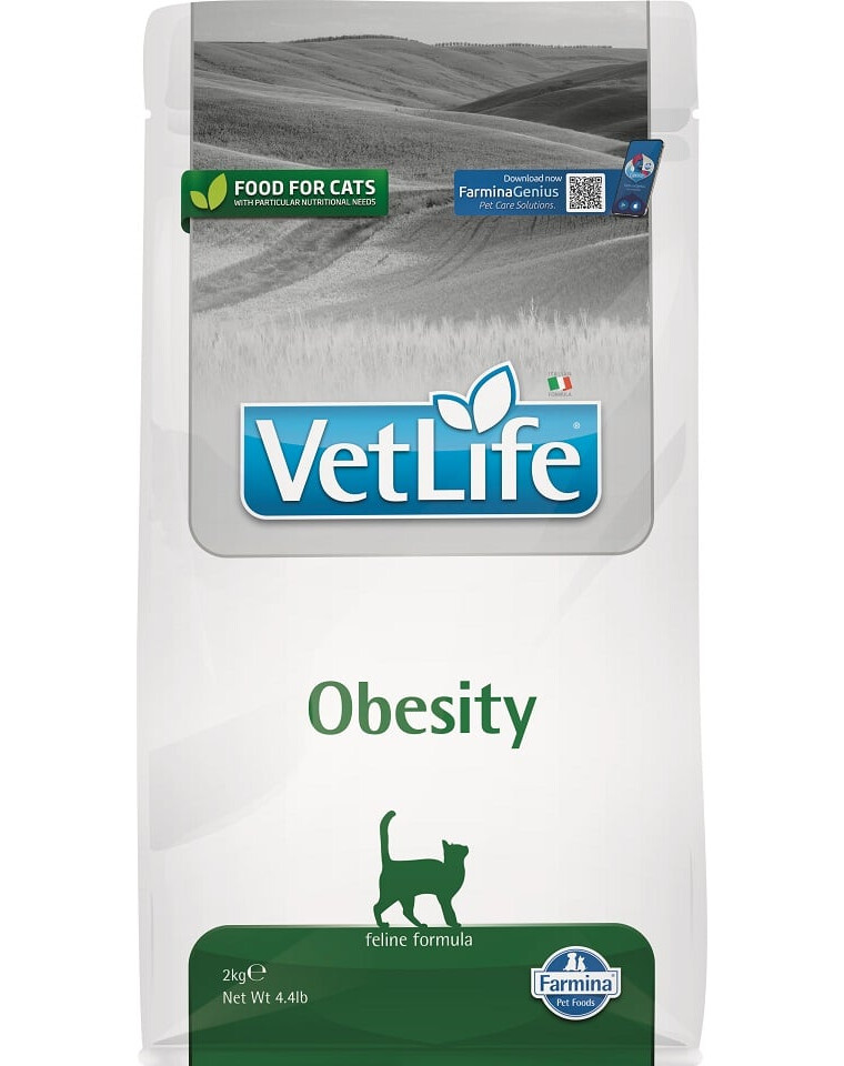 Ter vermindering van overgewicht. Farmina Vet Life Obesity is een complete dieetvoeding voor volwassen katten, om overtollig lichaamsgewicht te verminderen.