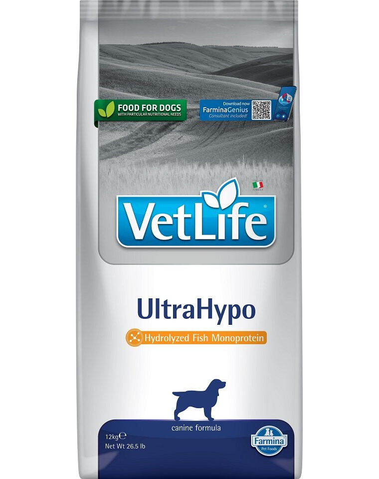Bij allergische reacties en atopieën (erfelijke overgevoeligheid). Farmina Vet Life UltraHypo is een dieetvoeding voor volwassen honden, om voedselallergieën en voedselintoleranties te verminderen. Het wordt gebruikt als diagnostisch middel (uitsluitdieet). Bijzonder geschikt ook voor de refractaire behandeling van atopische dermatitis en recidiverende diarree.
