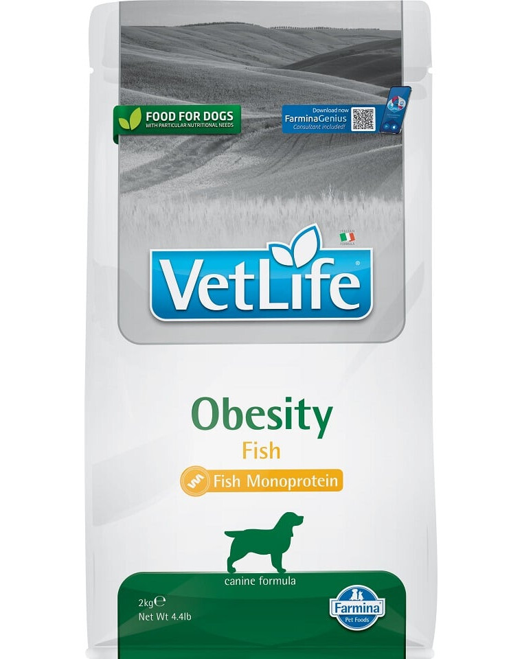 Farmina Obesity Fish is een hondenvoer voor de reductie van overmatig lichaamsgewicht, hulpmiddel bij de behandeling van diabetes. Farmina Vet Life Obesity is een dieetvoeding voor volwassen honden ter vermindering van overmatig lichaamsgewicht en ter controle van de glucosevoorziening (diabetes).