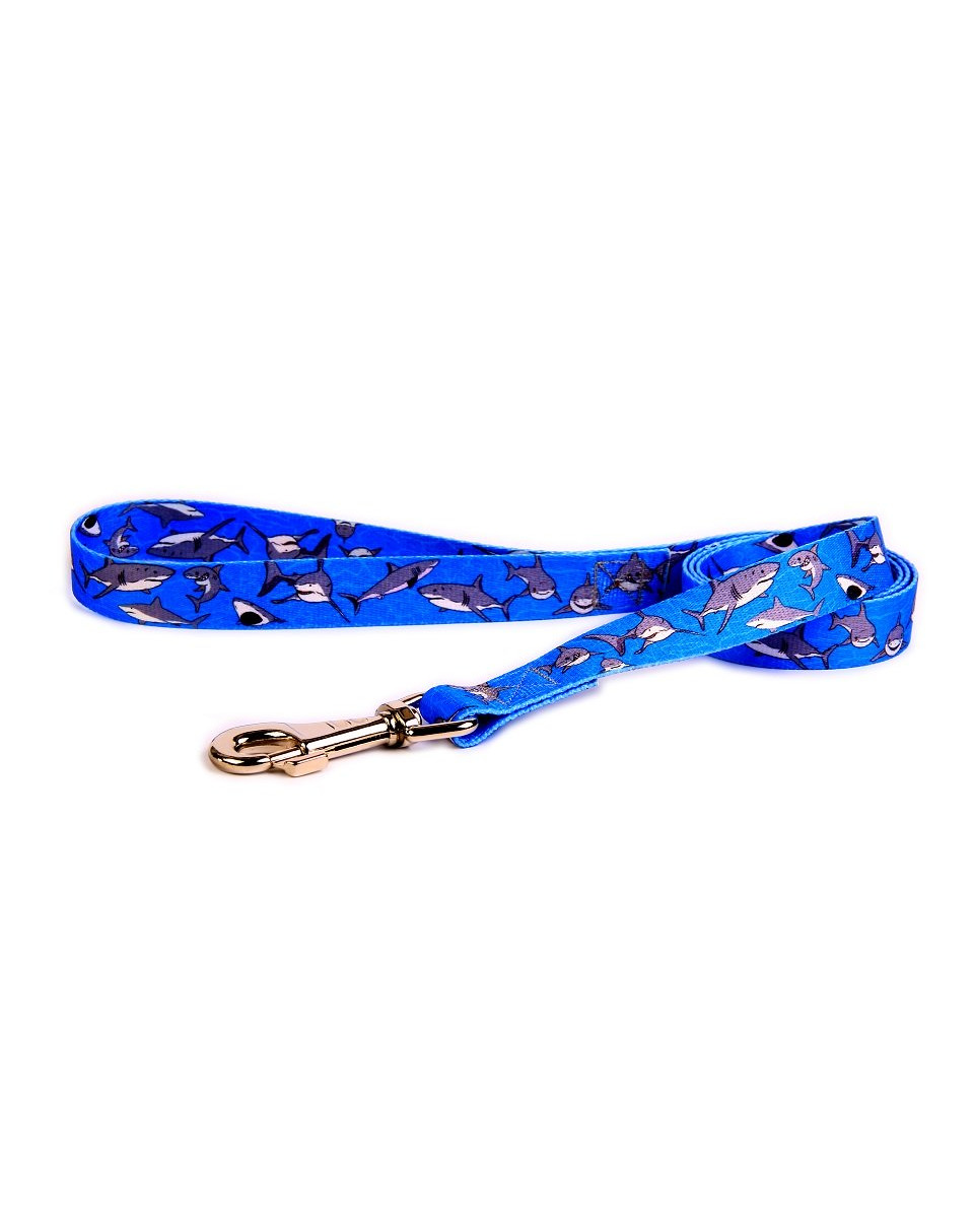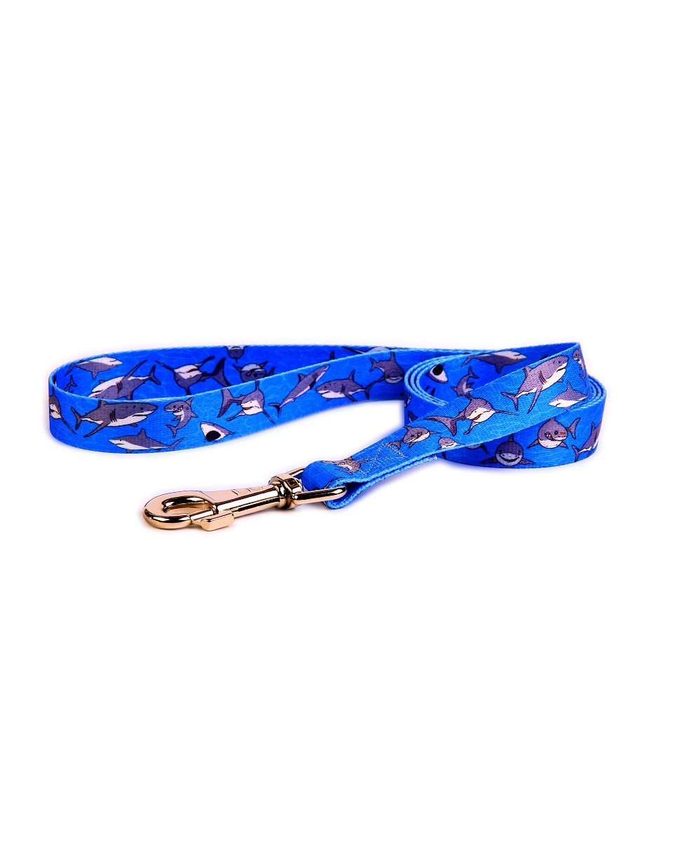 Het betoverende haai-motief op een blauwe achtergrond is geschikt voor zowel trotse huisverdedigers, hondachtige elegantie als voor unieke en onafhankelijke dames!