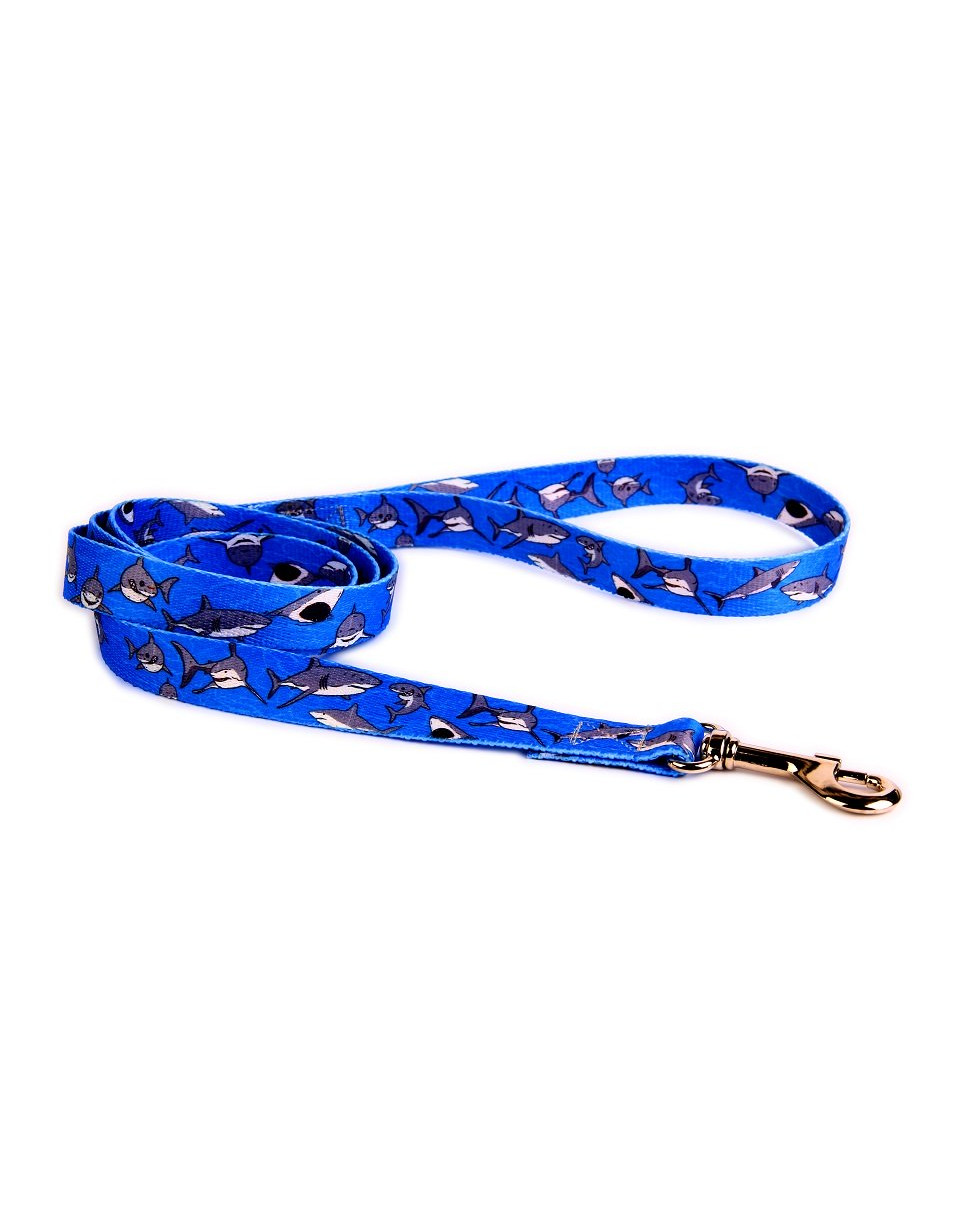 Het betoverende haai-motief op een blauwe achtergrond is geschikt voor zowel trotse huisverdedigers, hondachtige elegantie als voor unieke en onafhankelijke dames!