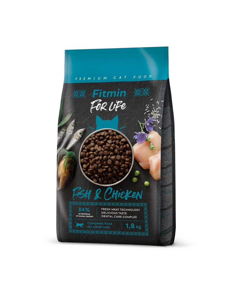 Samenstelling: Vlees (verse haring 17,5%, gedroogd kippenvlees 15%, gedroogd haringvlees 15%, zalmproteïne 3%, gehydrolyseerd kippenproteïne 3,8%), rijst, gevogeltevet, haver, bietenpulp, erwten, appelpulp, zalmolie 1,8%, gist, geïnactiveerde gist Saccharomyces cerevisiae (Beta-Glucanen) 0,7%, lijnzaad, cichoreiwortel, kaliumchloride, groenlipmosselpoeder, Yucca 0,01%.