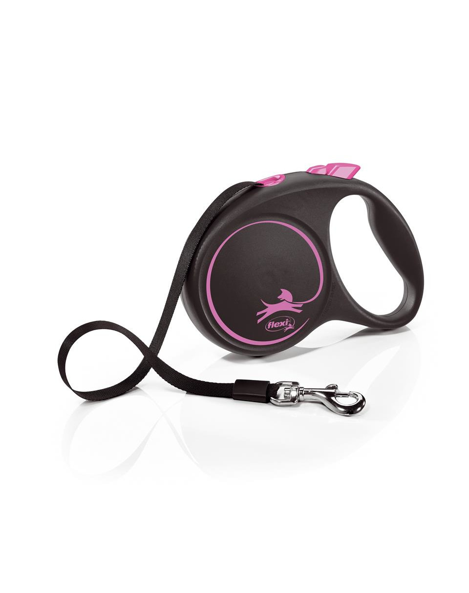 Die flexi BLACK DESIGN ist in drei kräftigen Farben erhältlich, die einen auffälligen Kontrast zum schwarzen Gehäuse bilden, sowie in einer subtilen, komplett schwarzen Leine, die durch ein silbernes Logo hervorgehoben wird.
