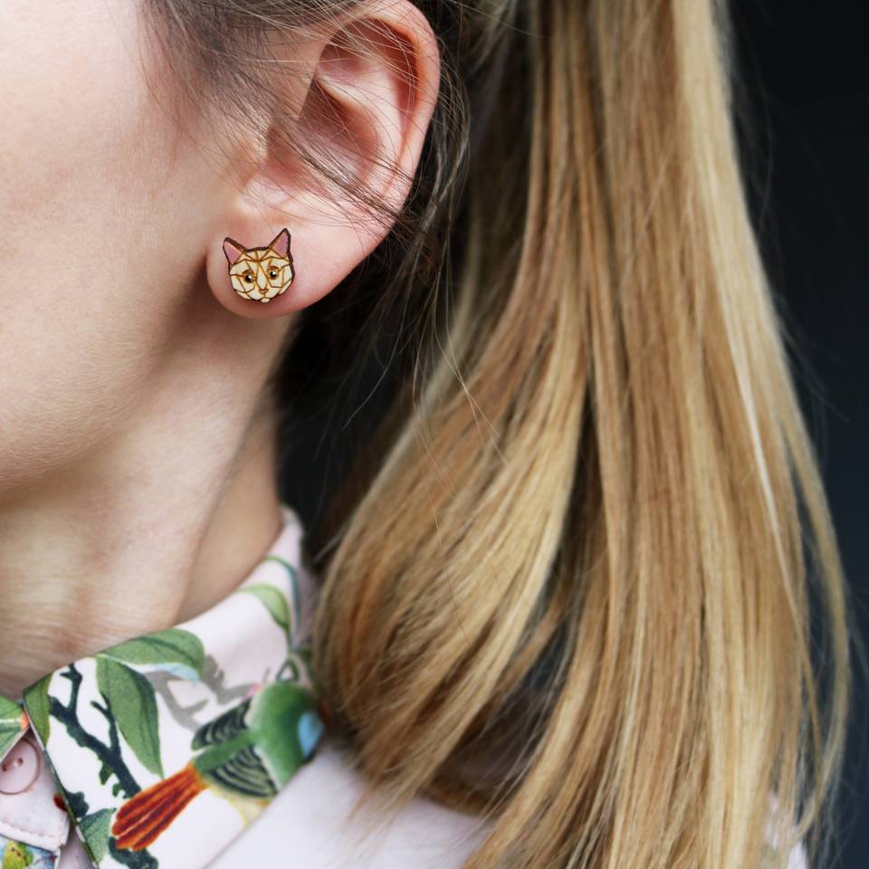 Geometrische oorbellen in kattenvorm zullen alle kattenliefhebbers verrassen. Dit geweldige accessoire past letterlijk bij alles, zodat u het elke dag met succes kunt dragen, maar ook bij grotere gelegenheden. Dergelijke oorbellen zijn ook een perfect cadeau-idee voor alle kittenliefhebbers.