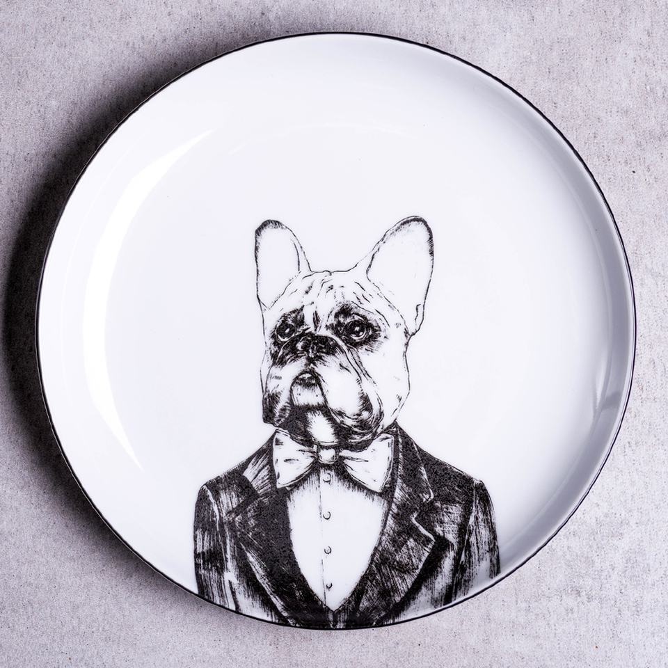 Zijn er hier bulldogfans? Daar ben ik zeker van! Een dessertbord met de afbeelding van onze geliefde Franse Bulldog is een ander gadget waarmee u uw gevoelens voor uw huisdier kunt tonen. Ongewoon porselein, versierd met illustraties van de auteur, is een ander idee voor een geslaagd cadeau, waar geen liefhebber van deze schattige huisdieren weerstand aan kan bieden.