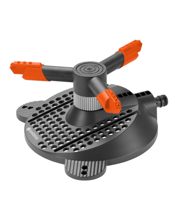 De GARDENA Classic Kreisregner Samba is een comfortabele cirkelspuiter voor kleinere tot middelgrote oppervlakken. Met hem kunt u oppervlakken van maximaal 250 m² beregenen, met een sproei bereik met een diameter van 3 m tot maximaal 18 m. Hij is uitgerust met draaibare precisie-spuitkoppen die een gelijkmatige, plasvrije waterverdeling mogelijk maken. De spuitvoet garandeert een stabiele werking en tegelijkertijd mobiel gebruik. De spuiter kan eenvoudig worden geprogrammeerd.