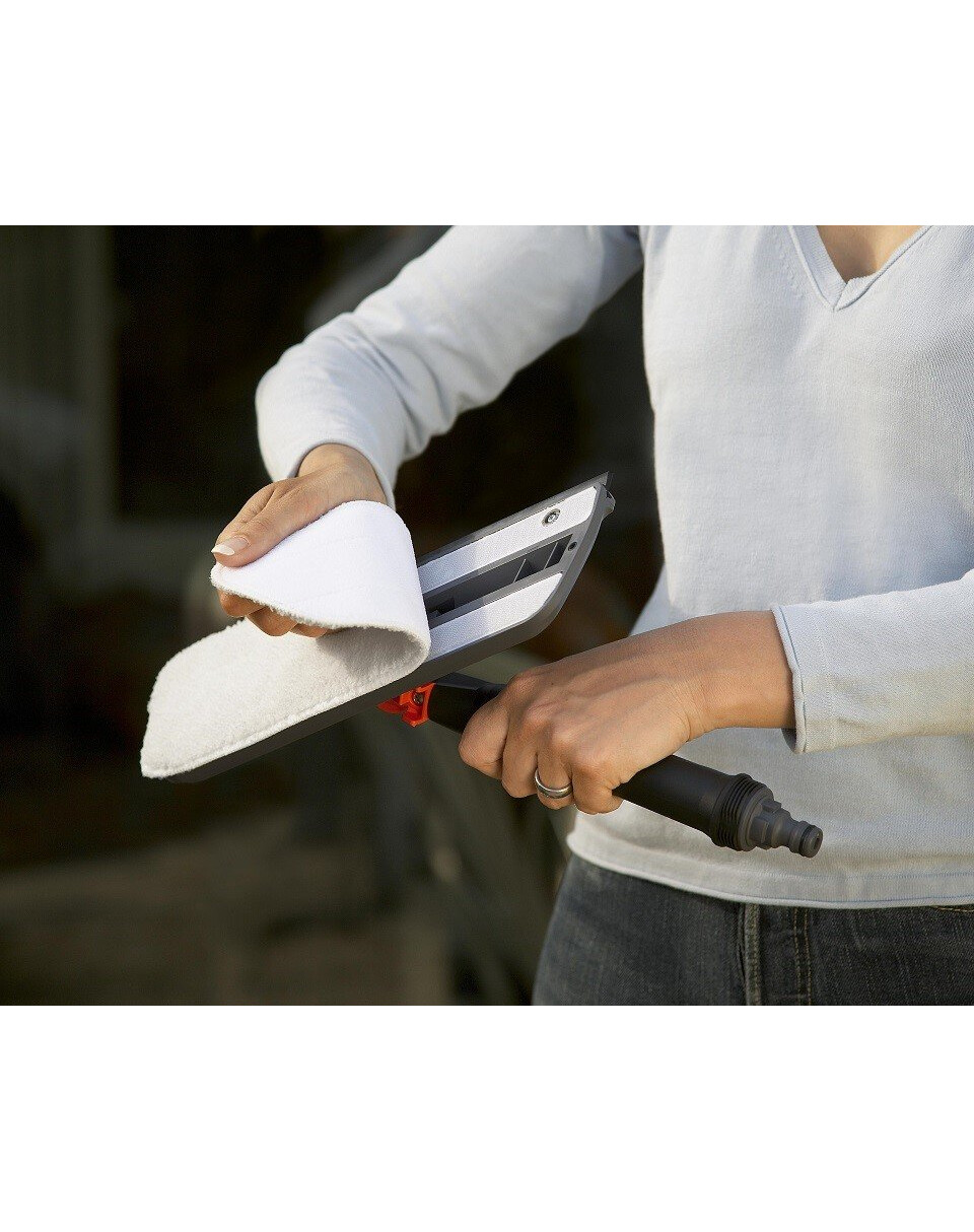 Het doek is voorzien van klittenband, zodat het gemakkelijk van de vensterreiniger kan worden verwijderd en weer kan worden bevestigd.