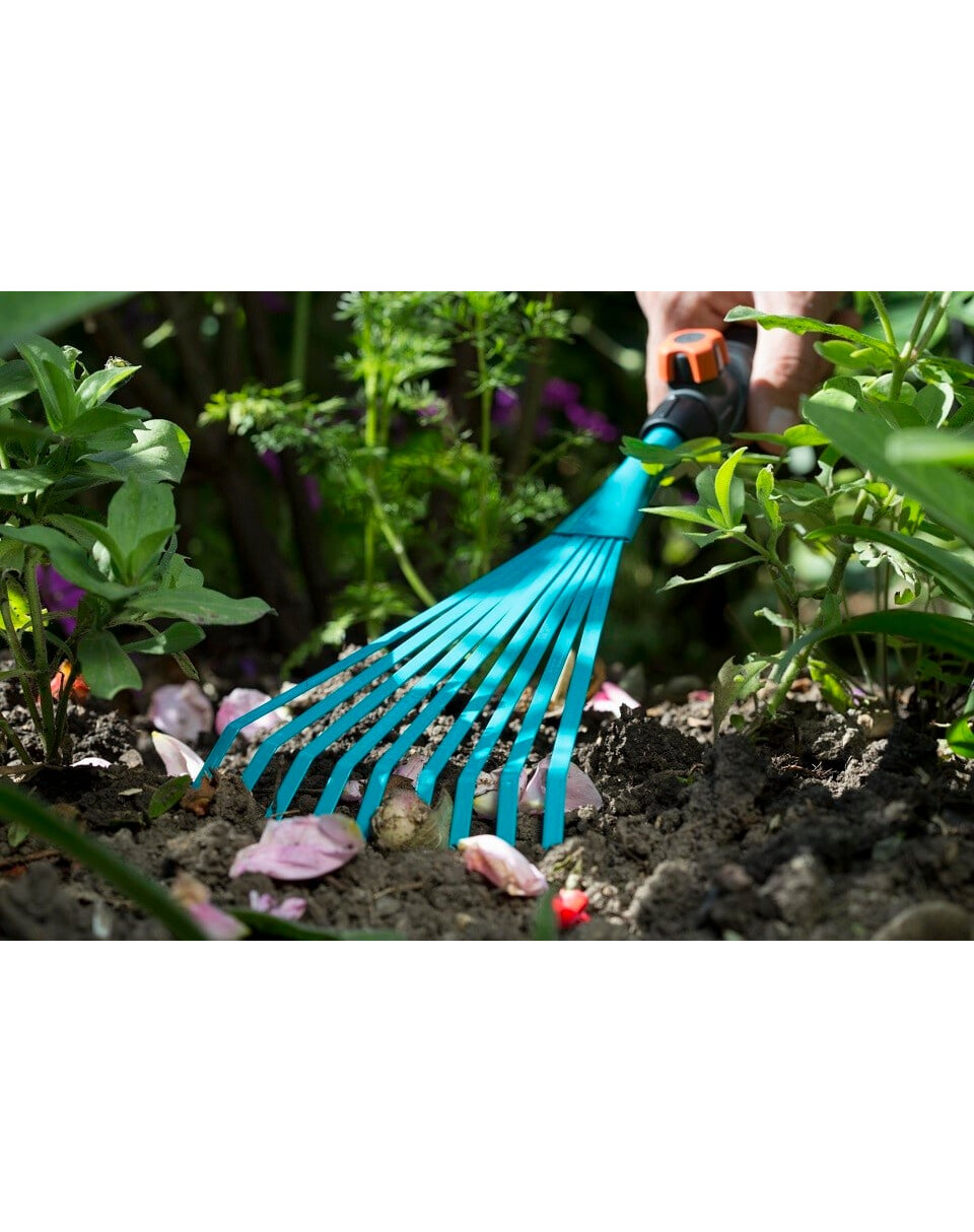 De GARDENA Combisystem - Compact hark is het ideale gereedschap voor het harken van bladeren, onkruid en gras uit perken, bloempotten en moeilijk bereikbare plaatsen. De ergonomische handgreep met zachte, antislip elementen zorgt voor comfortabel en prettig werken. De breedte van de hark bedraagt 12 cm. Ze zijn gemaakt van hoogwaardig staal en voorzien van een duroplastische kunststof coating om een lange levensduur te waarborgen.