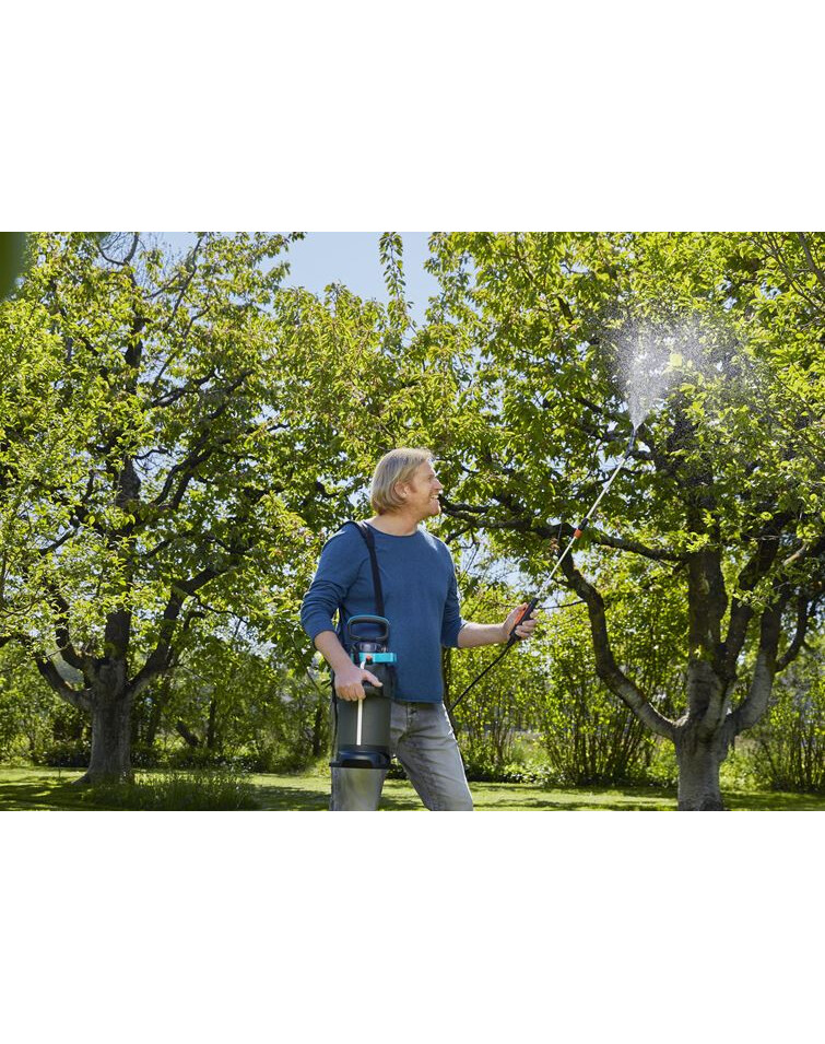 De Gardena drukspuit 5 L EasyPump is ideaal voor de gerichte toepassing van gewasbeschermings- of versterkende middelen in de tuin. Dankzij de lithium-ion accu is het spuiten met één druk op de knop mogelijk, zonder te pompen. Hij is gemaakt van kunststof met een brede kijkstrook voor het controleren van het vulniveau. De inhoud bedraagt 5 l. Telescoop spuitlans met verstelbare spuitmond van messing, ideaal voor onderbladspuiten. Met een groot voetoppervlak voor gemakkelijk pompen en een veilige stand. Een tweede opening maakt eenvoudig vullen, mengen en legen mogelijk. Het deksel dient als doseerdop voor meststoffen of gewasbeschermingsmiddelen. Praktisch is ook de impulsontspanner met permanente vergrendeling. Filter in te leggen, voor het vullen van zelfgemaakte aftreksels. Met veiligheidsontlastventiel.