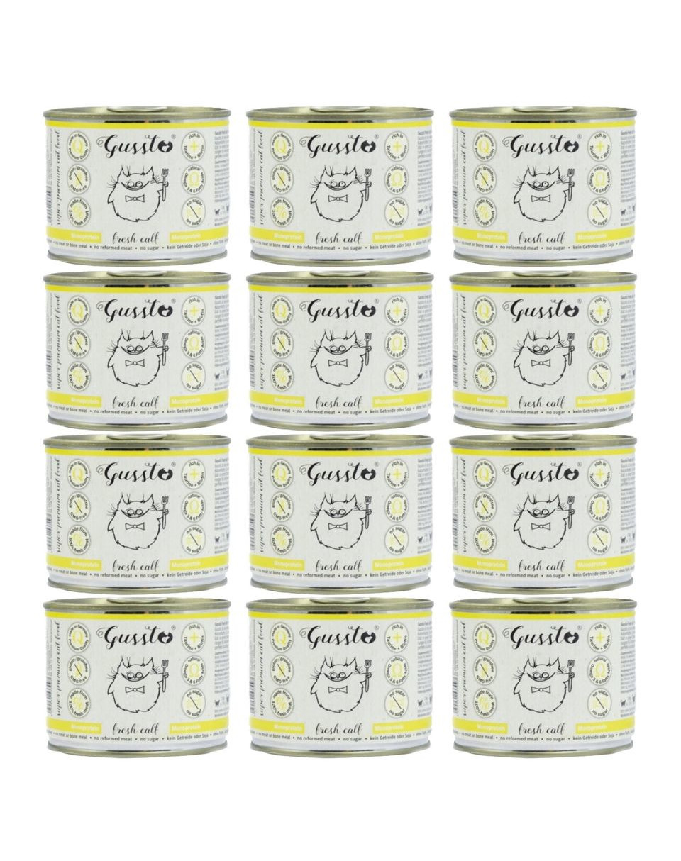 Volwaardig compleet en uitstekend uitgebalanceerd Super Premium kattenvoer. Wordt voor 100 % uit vlees van de hoogste kwaliteit geproduceerd, met inachtneming van de hoogste normen voor voedsel voor mensen. Gussto is de essentie van een goede en gezonde voeding. Bevat zeer veel vlees, ideaal afgestemd op de specifieke voedingsbehoeften van katten. Het is een enkel-eiwitvoer, dus holistisch, licht verteerbaar en zeer goed opneembaar, ook aanbevolen voor katten met een gevoelige maag-darmkanaal. Ook toegepast bij eliminatiediëten bij voedselallergieën. Een uitstekend uitgebalanceerde verhouding van calcium/fosfor minimaliseert het risico op urineweg- en nierziekten. Daarnaast bevat het voer Gussto veel noodzakelijke vitaminen en mineralen, is rijk aan taurine en biotine, en zijn bestanddeel is het heilzame distelolie – rijk aan onverzadigde vetzuren, dat ontstekingsremmende werking heeft, de spijsvertering en regeneratiefuncties van de lever regelt, evenals het afweersysteem versterkt.