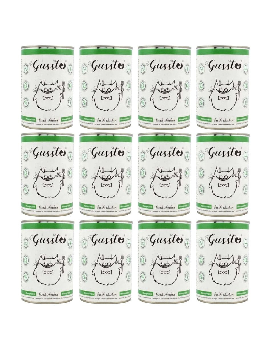 Volwaardig compleet en uitstekend uitgebalanceerd Super Premium kattenvoer. Wordt voor 100 % uit vlees van de hoogste kwaliteit geproduceerd, met inachtneming van de hoogste normen voor voedsel voor mensen. Gussto is de essentie van een goede en gezonde voeding. Bevat zeer veel vlees, ideaal afgestemd op de specifieke voedingsbehoeften van katten. Het is een enkel-eiwitvoer, dus holistisch, gemakkelijk verteerbaar en zeer goed opneembaar, ook aanbevolen voor katten met een gevoelige maag-darmkanaal. Toegepast ook bij eliminatiediëten bij voedselallergieën. Een uitstekend uitgebalanceerde verhouding van calcium/fosfor minimaliseert het risico op urineweg- en nierziekten. Daarnaast bevat het voer Gussto veel noodzakelijke vitamines en mineralen, is rijk aan taurine en biotine, en zijn bestanddeel is de heilzame distelolie – rijk aan onverzadigde vetzuren, die ontstekingsremmende werking heeft, de spijsvertering en regeneratiefuncties van de lever regelt, evenals het afweersysteem versterkt.