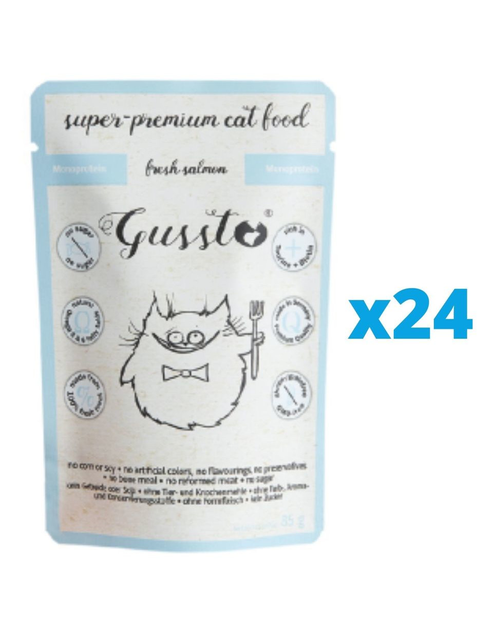 Volwaardig compleet en uitstekend uitgebalanceerd Super Premium kattenvoer. Wordt voor 100 % gemaakt van vlees van de hoogste kwaliteit, met inachtneming van de hoogste normen voor voedsel voor mensen. Gussto is de essentie van een goede en gezonde voeding. Bevat zeer veel vlees, ideaal afgestemd op de specifieke voedingsbehoeften van katten. Het is een enkel-eiwitvoer, dus holistisch, licht verteerbaar en zeer goed opneembaar, ook aanbevolen voor katten met een gevoelige maag-darmkanaal. Ook toegepast bij eliminatiediëten bij voedselallergieën. Een uitstekend uitgebalanceerde verhouding van calcium/fosfor minimaliseert het risico van urineweg- en nierziekten. Daarnaast bevat het voer Gussto veel noodzakelijke vitamines en mineralen, is rijk aan taurine en biotine, en zijn bestanddeel is de heilzame distelolie – rijk aan onverzadigde vetzuren, die een ontstekingsremmende werking heeft, de spijsvertering en regeneratiefuncties van de lever regelt, evenals het afweersysteem versterkt.